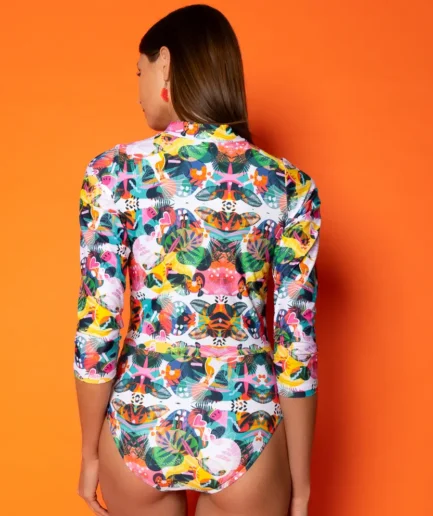Women’s Zip Up Long Sleeve Bodysuit Tropical