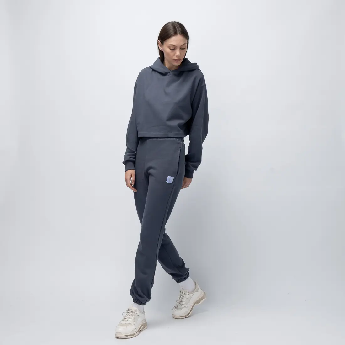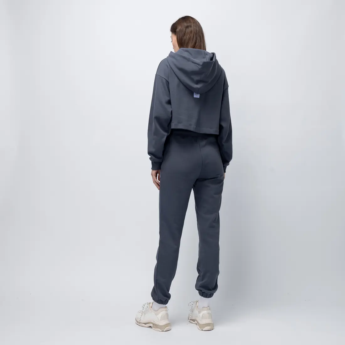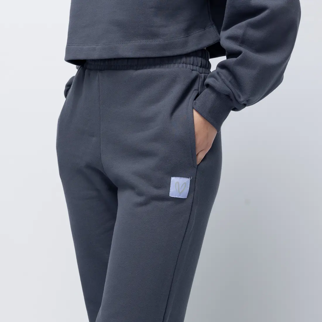 Το χαλαρό αλλά κομψό fit, η απαλή γραμμή με λάστιχο στον αστράγαλο και η exclusive απόχρωση Ardesia που έχει βαφτεί στην Ελλάδα από μη τοξικές βαφές, καθιστούν αυτό το jogger μια απόλυτα στιλάτη και υπεύθυνη επιλογή. Η διακριτική ετικέτα με το logo V στο ίδιο χρώμα συμπληρώνει ένα look ήσυχης αυτοπεποίθησης.
